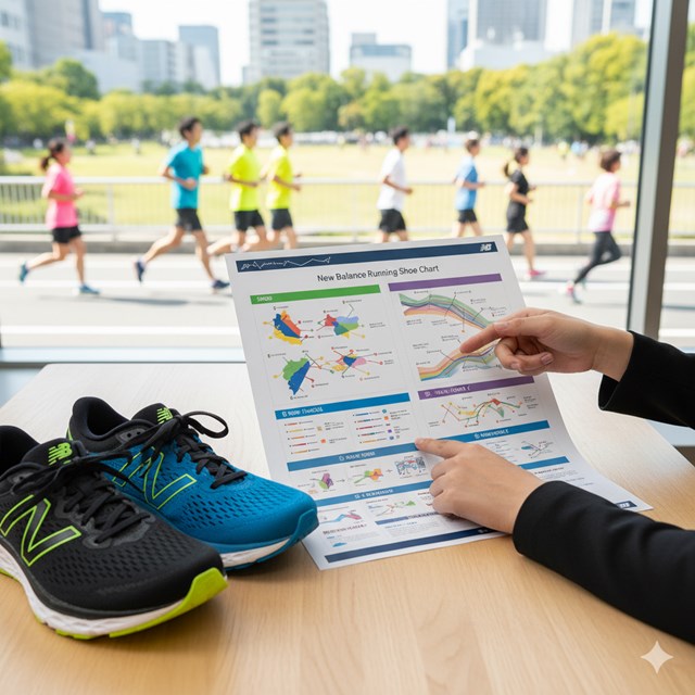 この記事では、そんな複雑に見えるニューバランスのシューズチャートを、私Fがスッキリ整理して、できるだけ分かりやすく解説していきますね。読み終わる頃には、きっとあなたにピッタリな一足を見つけるヒントが得られるかなと思います!