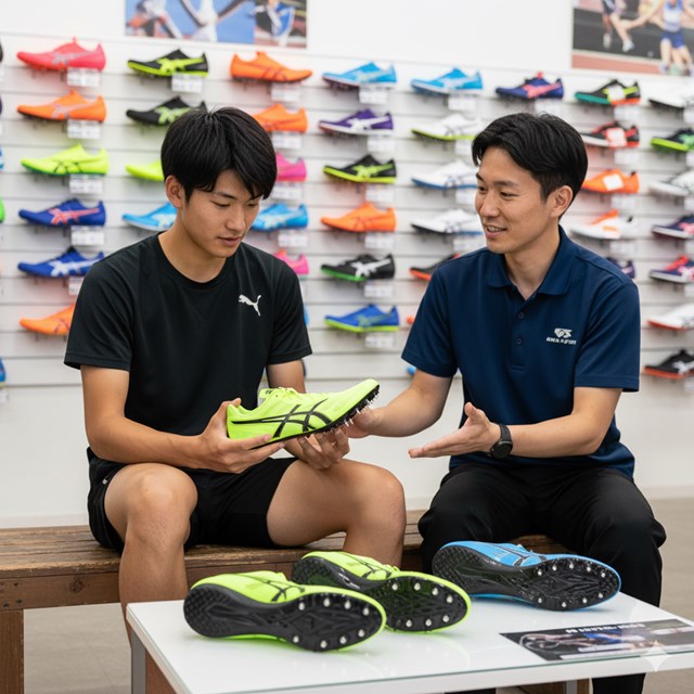 また、陸上専門店のスタッフさんは、本レポートで解説したような専門知識(レベル、トラック、走法、プレートの硬さ)に基づき、個々の選手に最適なモデルをアドバイスしてくれます。これはオンラインでは得られない貴重な情報ですよね。
